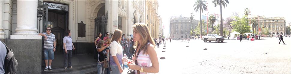 Como chegar: Chegamos em vôo vindo de Guarulhos (SP) diretamente até Santiago, através da Lan Chile. Foi um vôo muito tranquilo, com uma tripulação muito atenciosa e um pouso extremamente suave. o comandante permitiu tirarmos fotos em sua poltrona na cabine. Uma curiosidade é a venda de produtos do Duty Free durante o vôo. Onde ficamos: Estamos hospedados no Hotel Gen Suíte e SPA e além do atendimento de recepção ser muito ruim, muitas reclamações dos grupos que chegam, o café da manhã é muito simples para o padrão que o hotel sugere.Coloquem mais café do que leite para poder tomar.