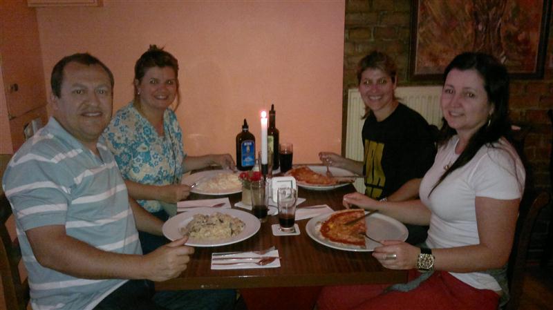 Almoço na pizzaria em frente ao stúdio.