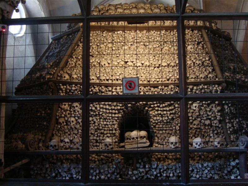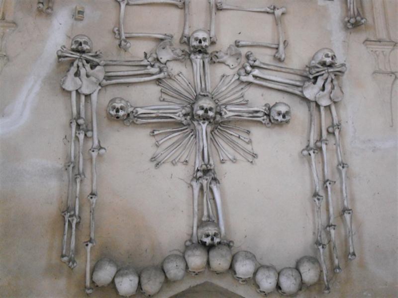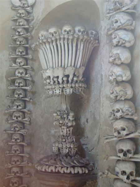 do cemitério ossadas de milhares de pessoas e usou-as para decorar a