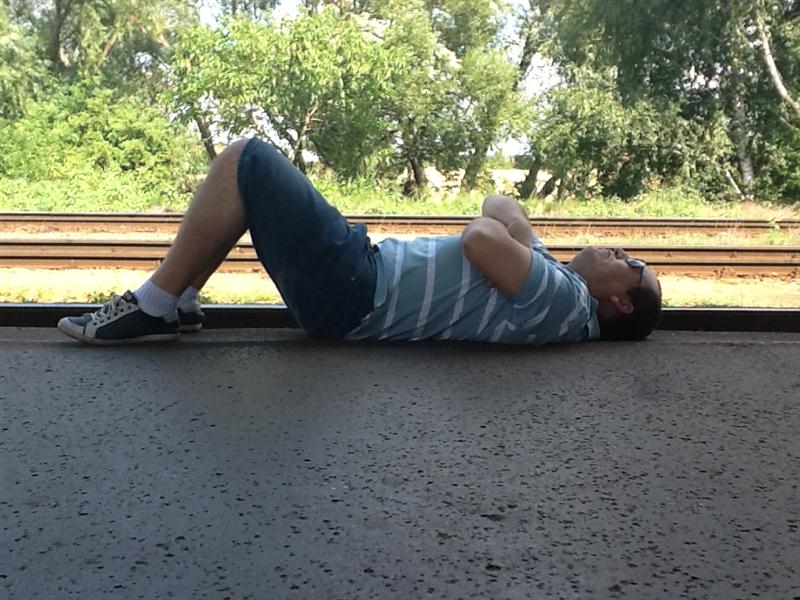 Espera do trem. Ele passa de hora em hora.